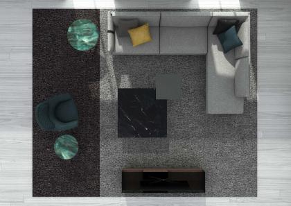 Dee Dee с огромной элегантностью взаимодействует со столиками Коллекции Рифф, изготовленными с той же самой отделкой как и диван: основа из гофрированной чёрной стали - как и ножки-санки DeeDee, a верхняя поверхность из эксклюзивных мраморов как Каррара и Маркиния.