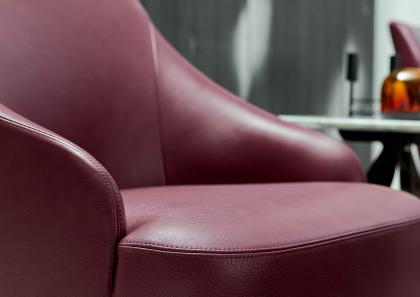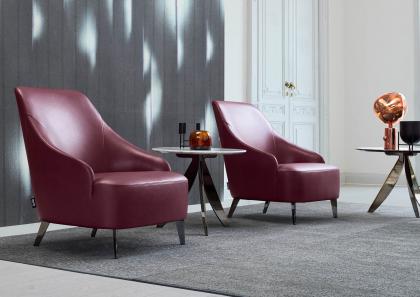Кресло Emilia может быть реализована под размер, в желаемых деталях и обивке, может быть также реализована со стальной хромированной крутящиеся базой.